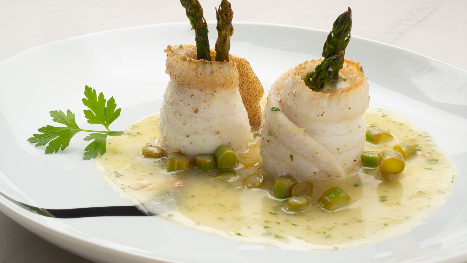 Elaboración de la receta Popietas filetes de gallo con salsa de limón y espárragos verdes por Karlos Arguiñano. Recetas con pasta gallo nature 2021. Para hacer el gallo a la plancha pide en la pescadería te lo limpien.